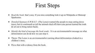 This channel discusses and reviews books novels and short stories through drawingpoorly. 1-Page Summary of The Lorax Overview. Summary of The Lorax An Example.